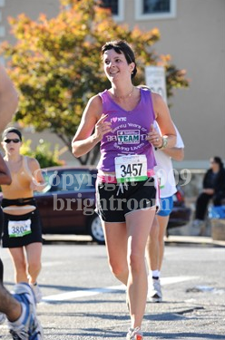 I was all pumped when I looked at my watch, which said I averaged an 8:33 pace. Whoo-hoo! Too bad my ACTUAL pace was 8:42. Why the discrepancy? Well, Coach Christine said all the turns added mileage on, and that UNLESS you ran on the course line exactly you probably ran an actual 13.33 miles (everyone who had a Garmin had that the course was 13.33 miles).